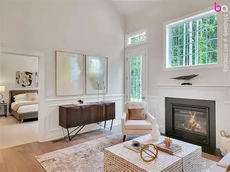 Highlight focal points like fireplaces or large windows